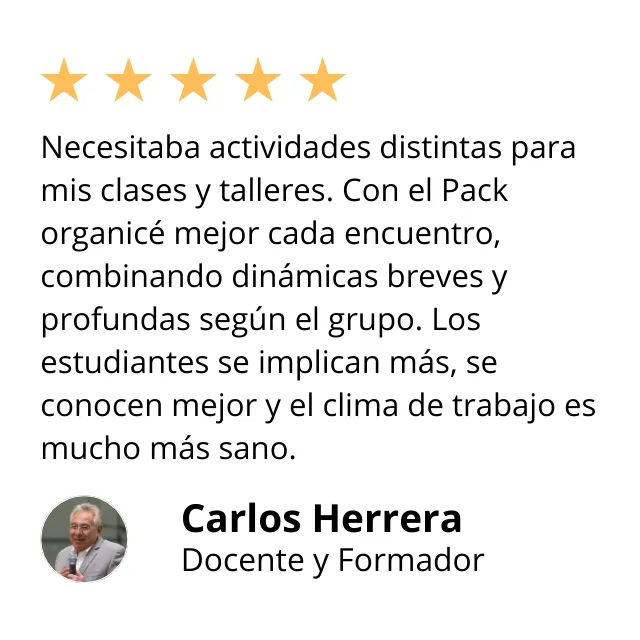 Muy poco. La idea del pack es ahorrarte horas (o días) de preparación. Cada dinámica tiene tiempos, instrucciones y objetivos claros para que puedas implementarla de inmediato.